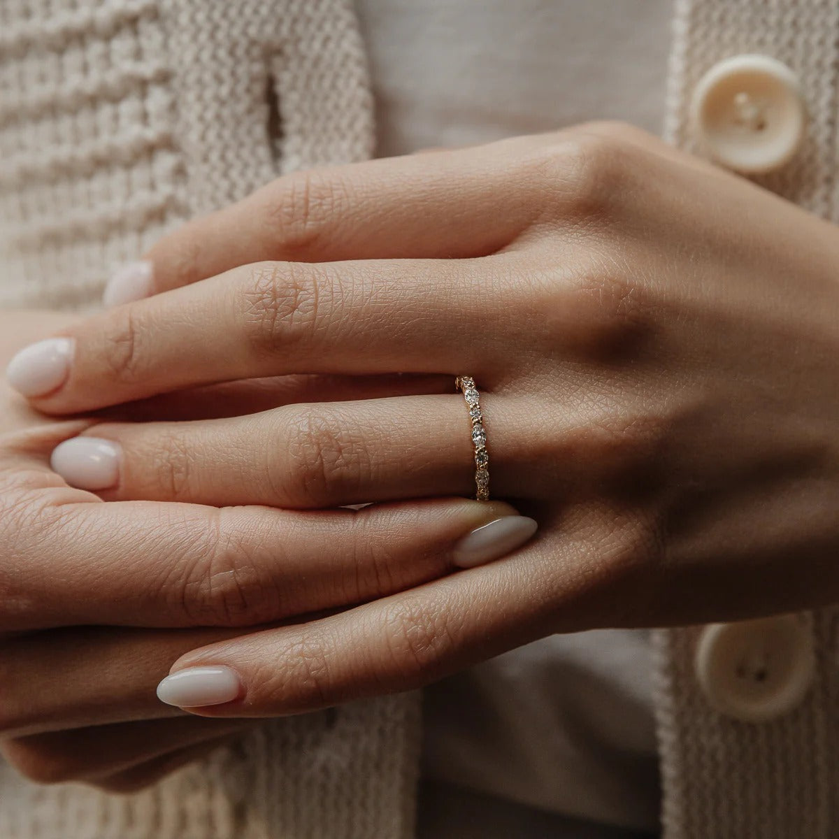 Each Heavenly Moissanite wedding band is made to order, ensuring a perfect fit and personalized finish. Delivered in a luxury ring box, ready for your special moment.