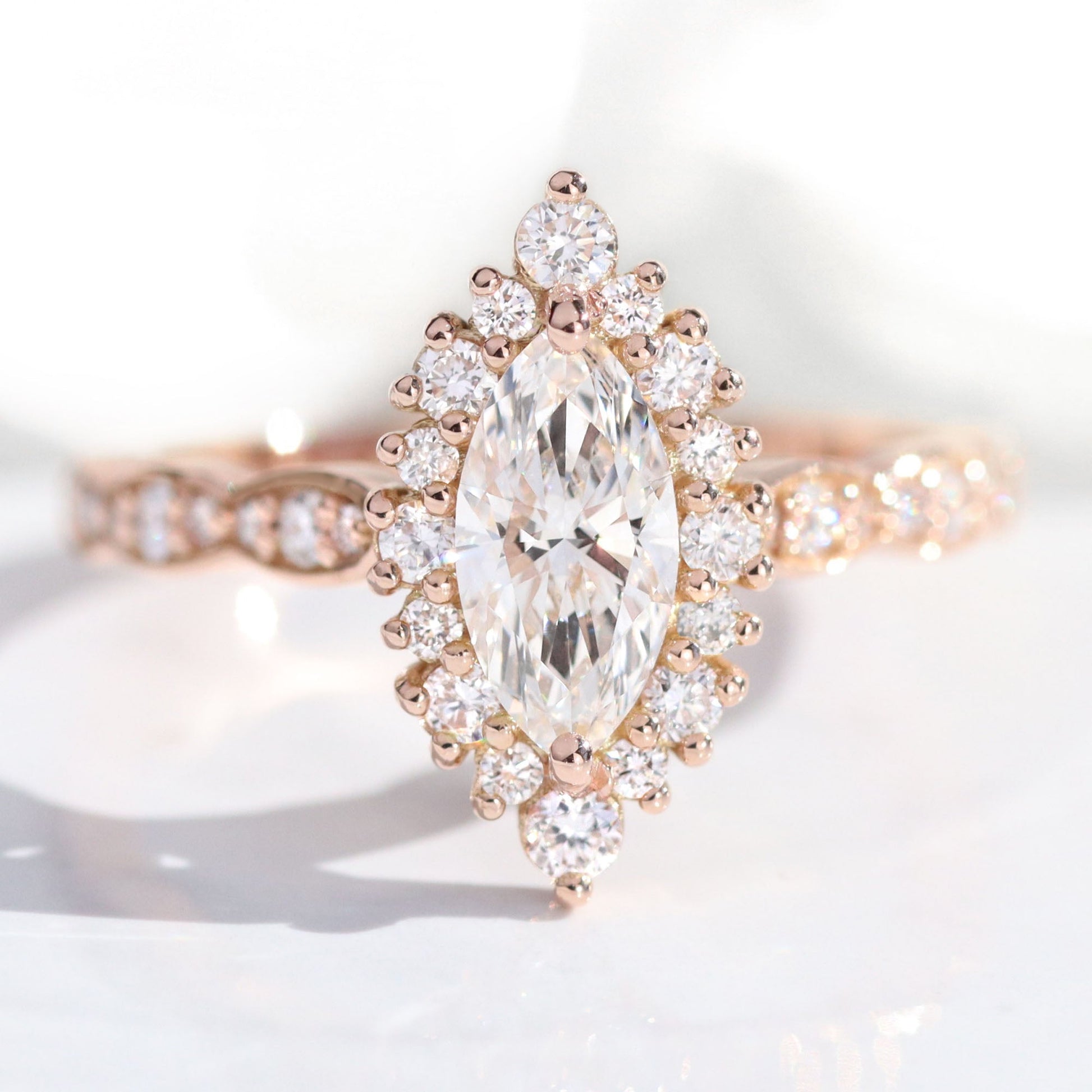 0.7 CT Marquise Cut Halo & Pave Moissanite Bridal Ring Set