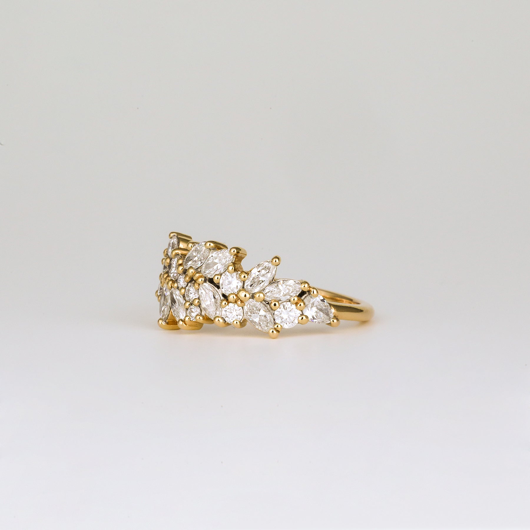 0.92 TCW Marquise & Round Shaped Cluster Moissanite Wedding Band