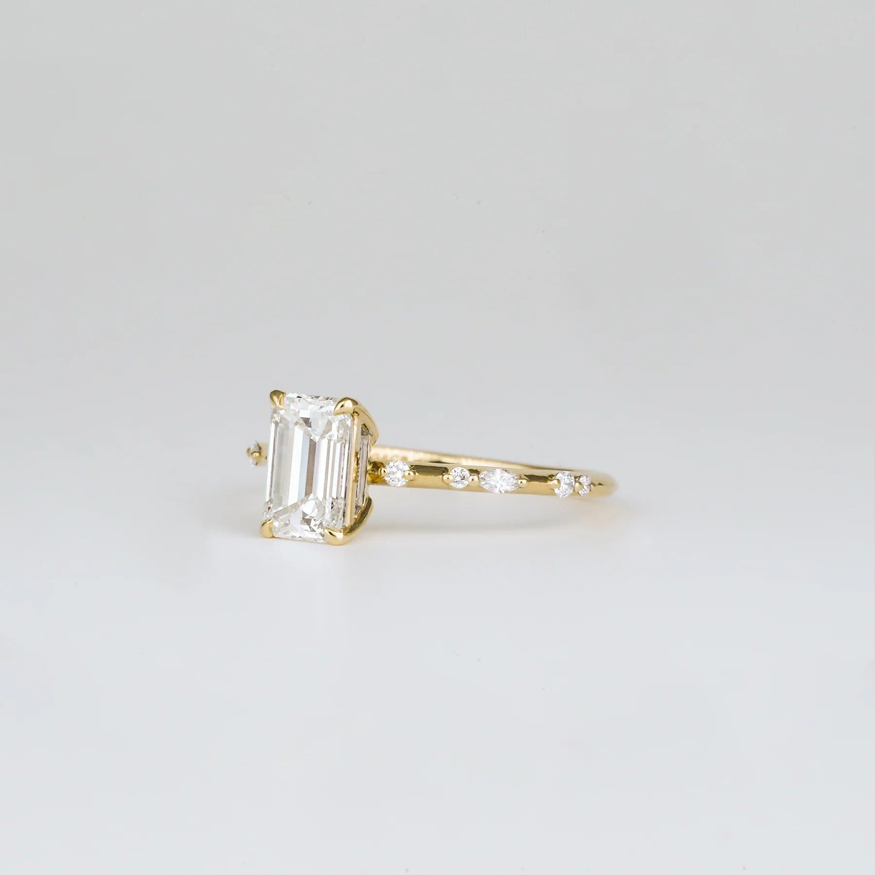 1.01 CT Emerald Shaped Dainty Moissanite Engagement Ring