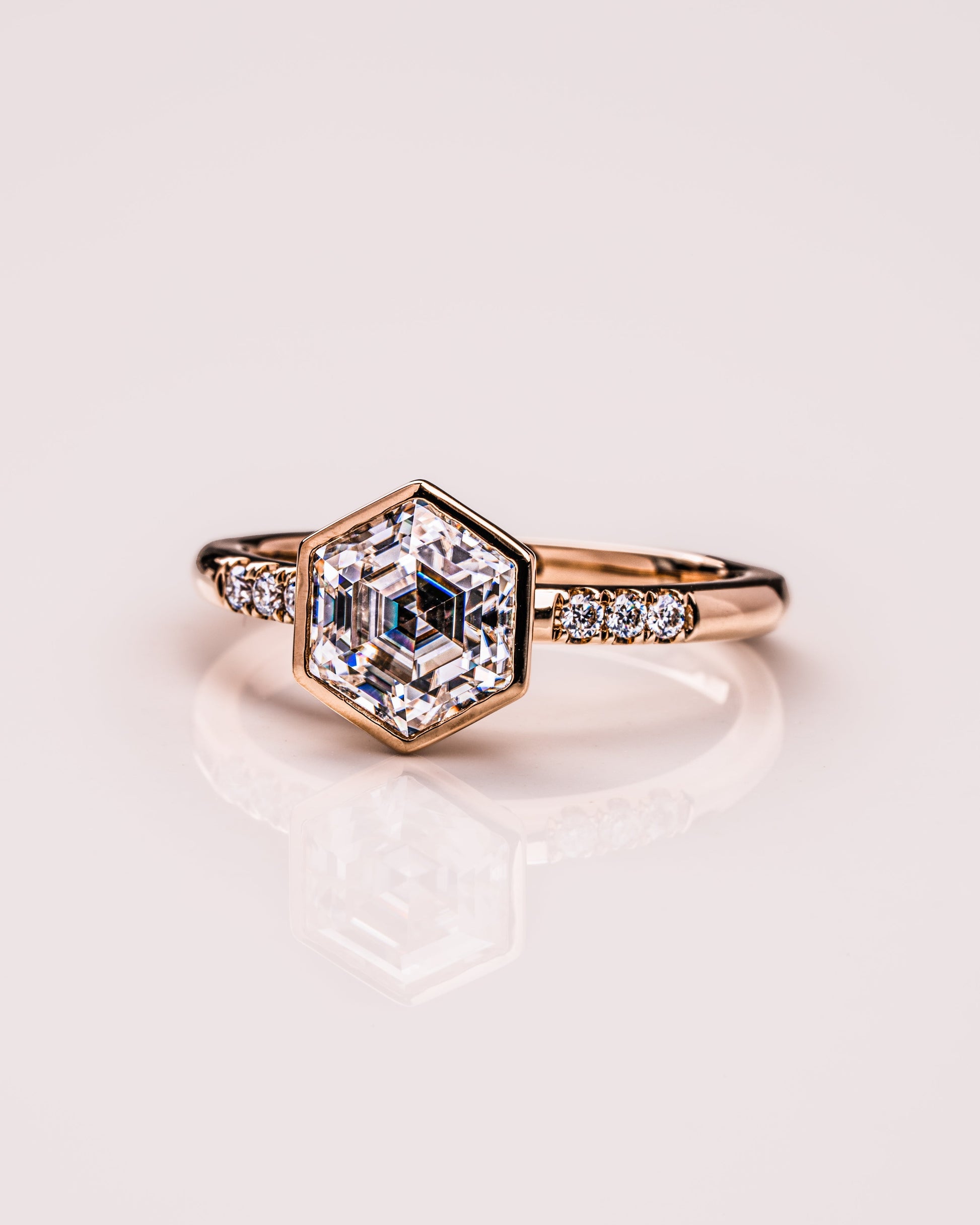 1.15 CT Hexagon Cut Pave Moissanite Engagement Ring