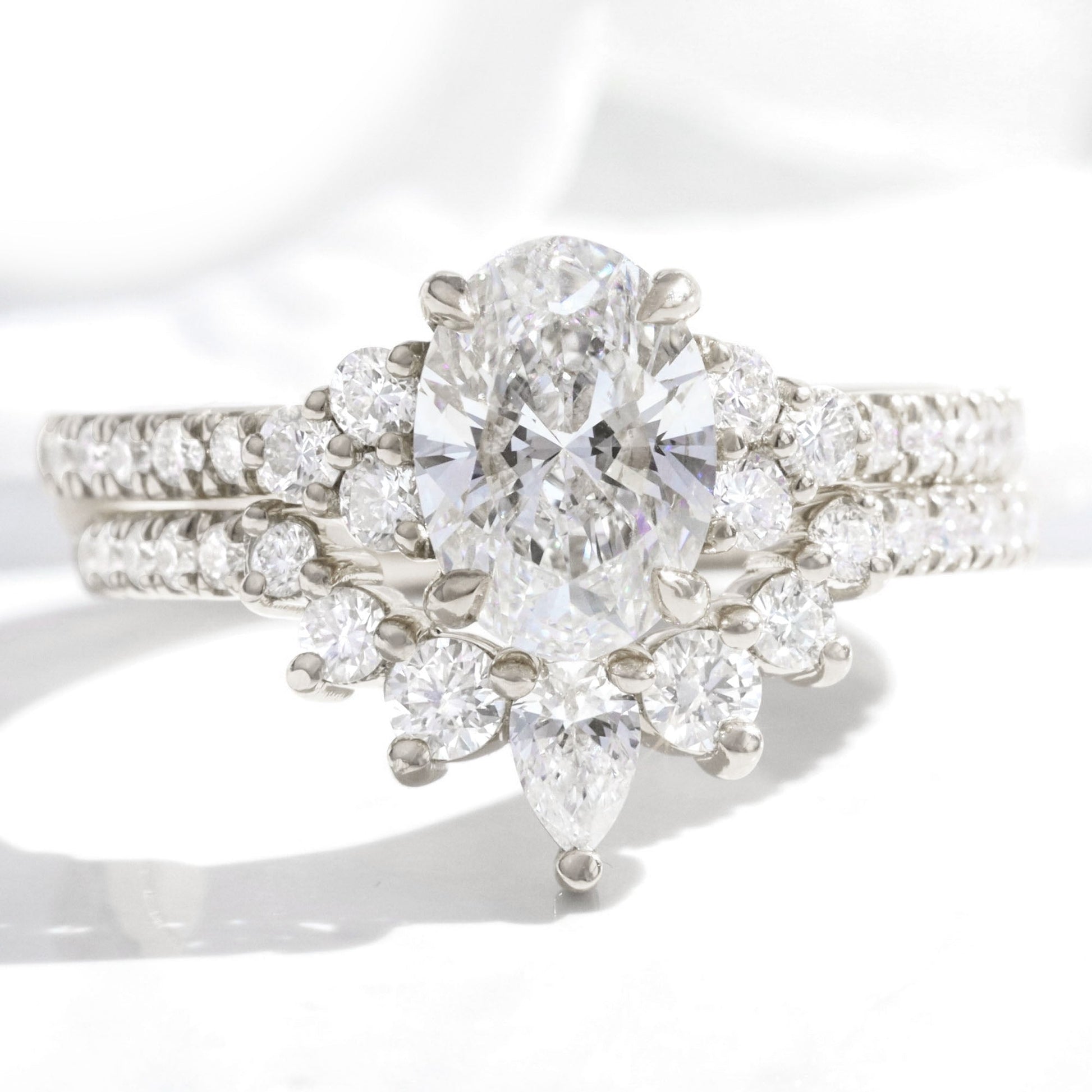 1.2 CT Oval Cut Vintage Cluster Moissanite Bridal Ring Set