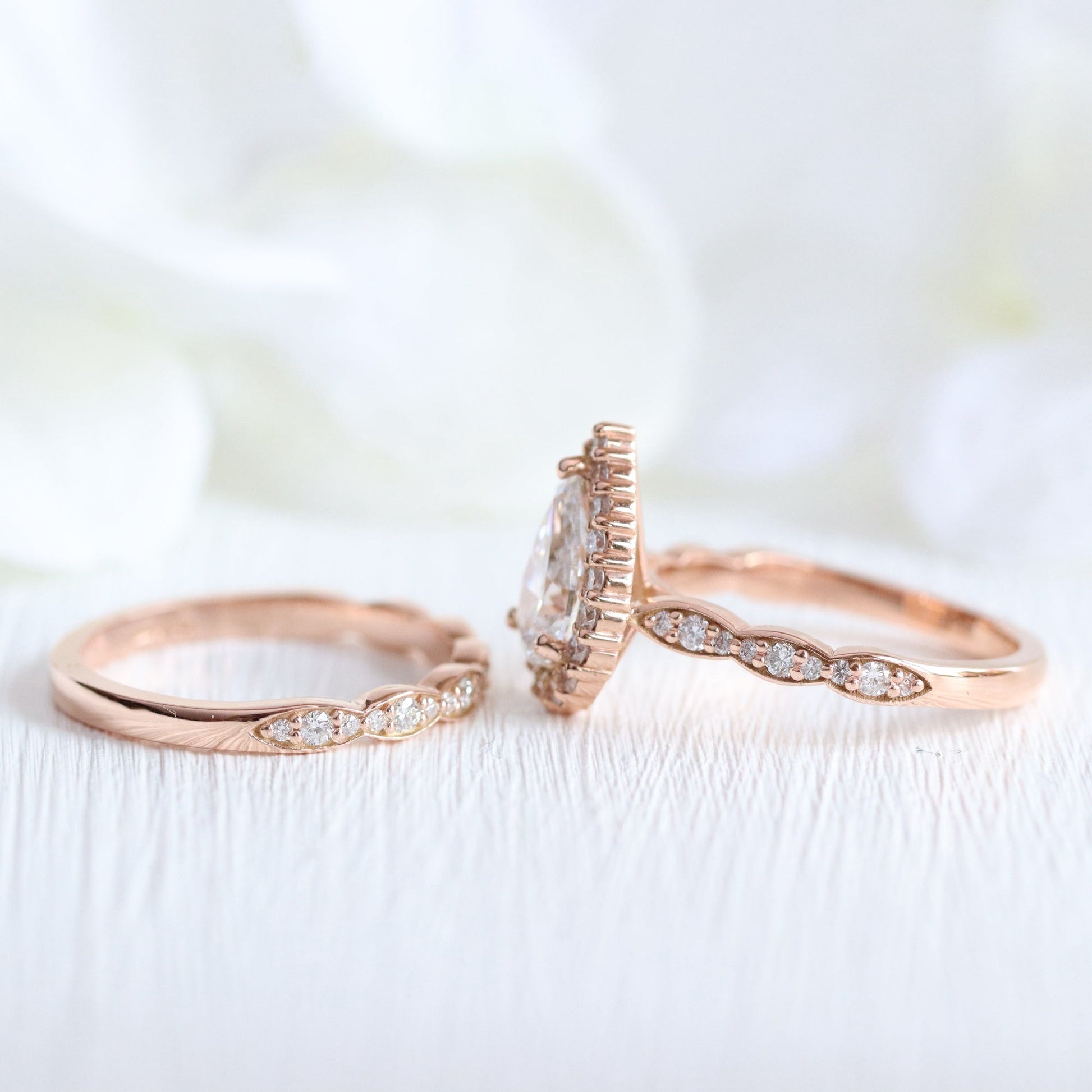 1.2 CT Pear Cut Curved Halo & Pave Moissanite Bridal Ring Set