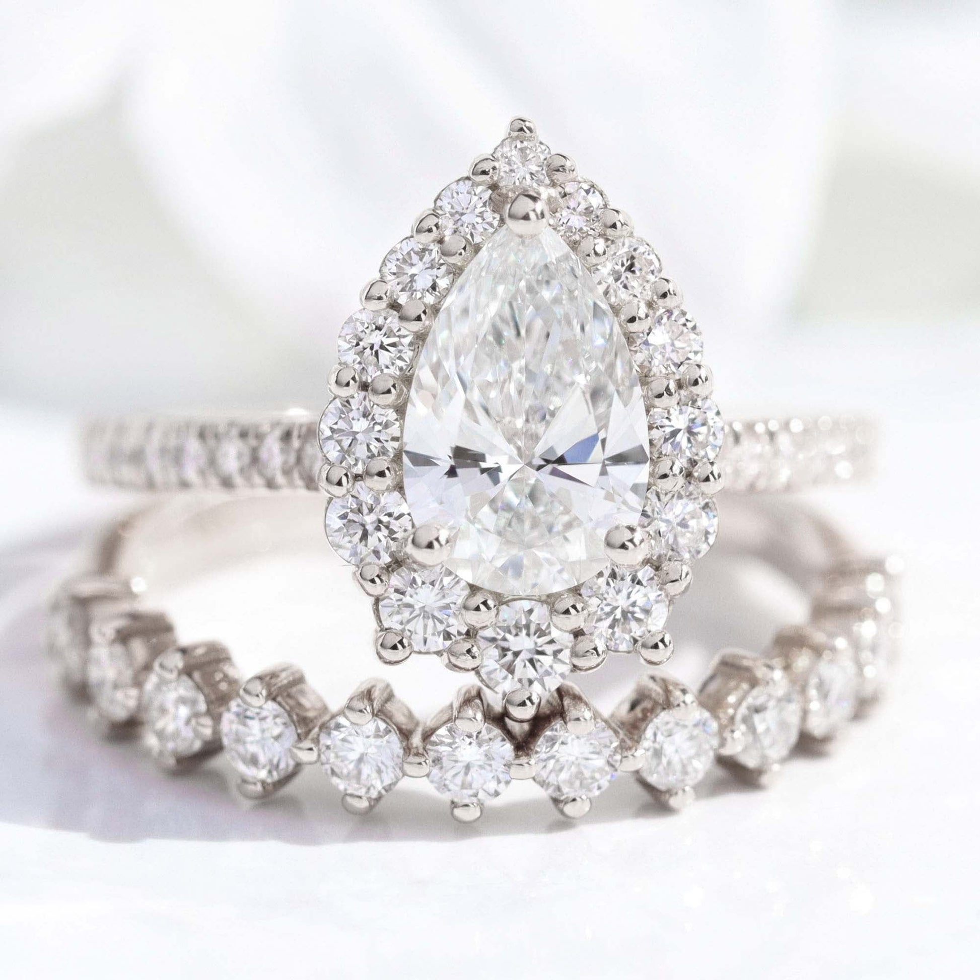 1.2 CT Pear Cut Halo & Pave Moissanite Bridal Ring Set