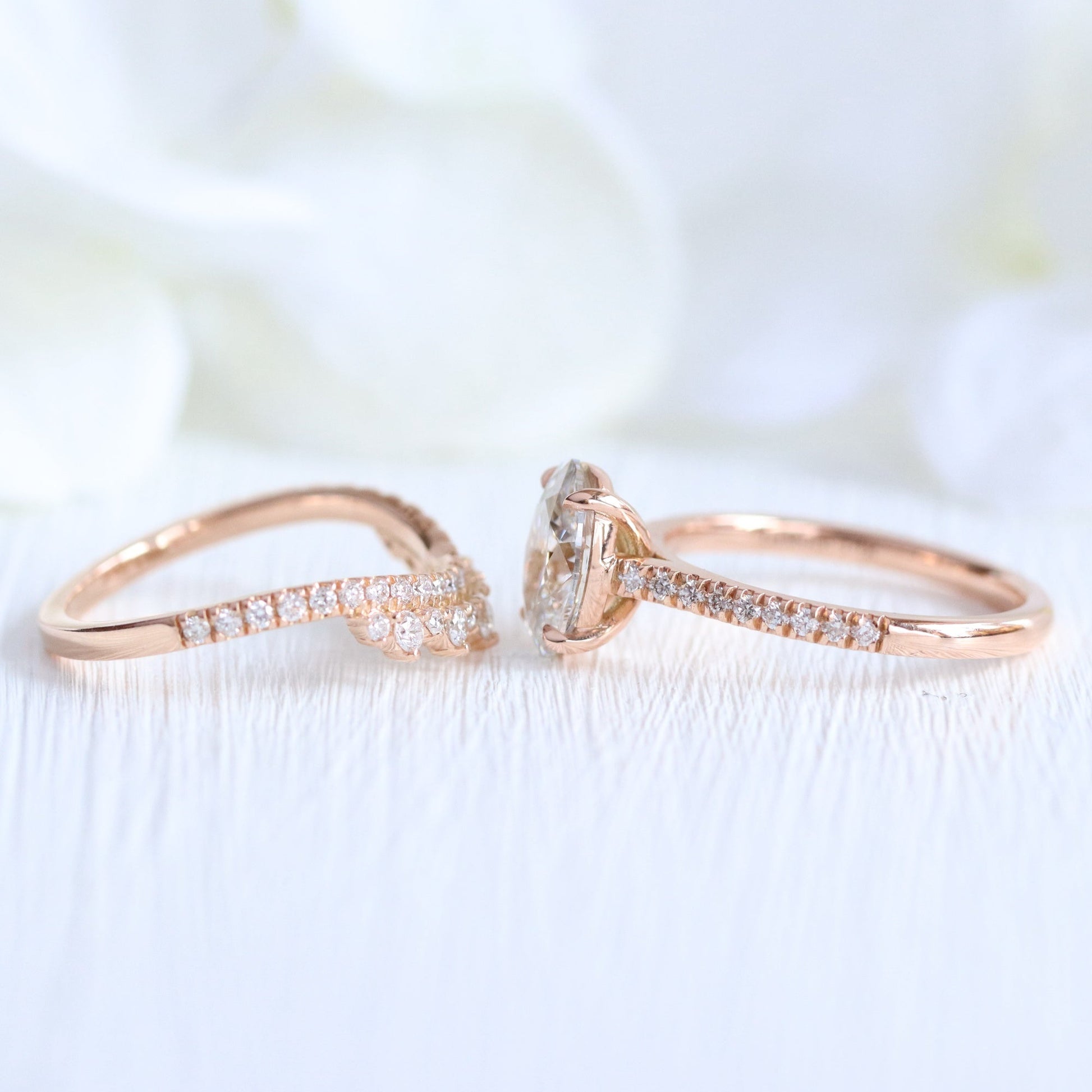 1.5 CT Oval Cut Curved Vintage Moissanite Bridal Ring Set