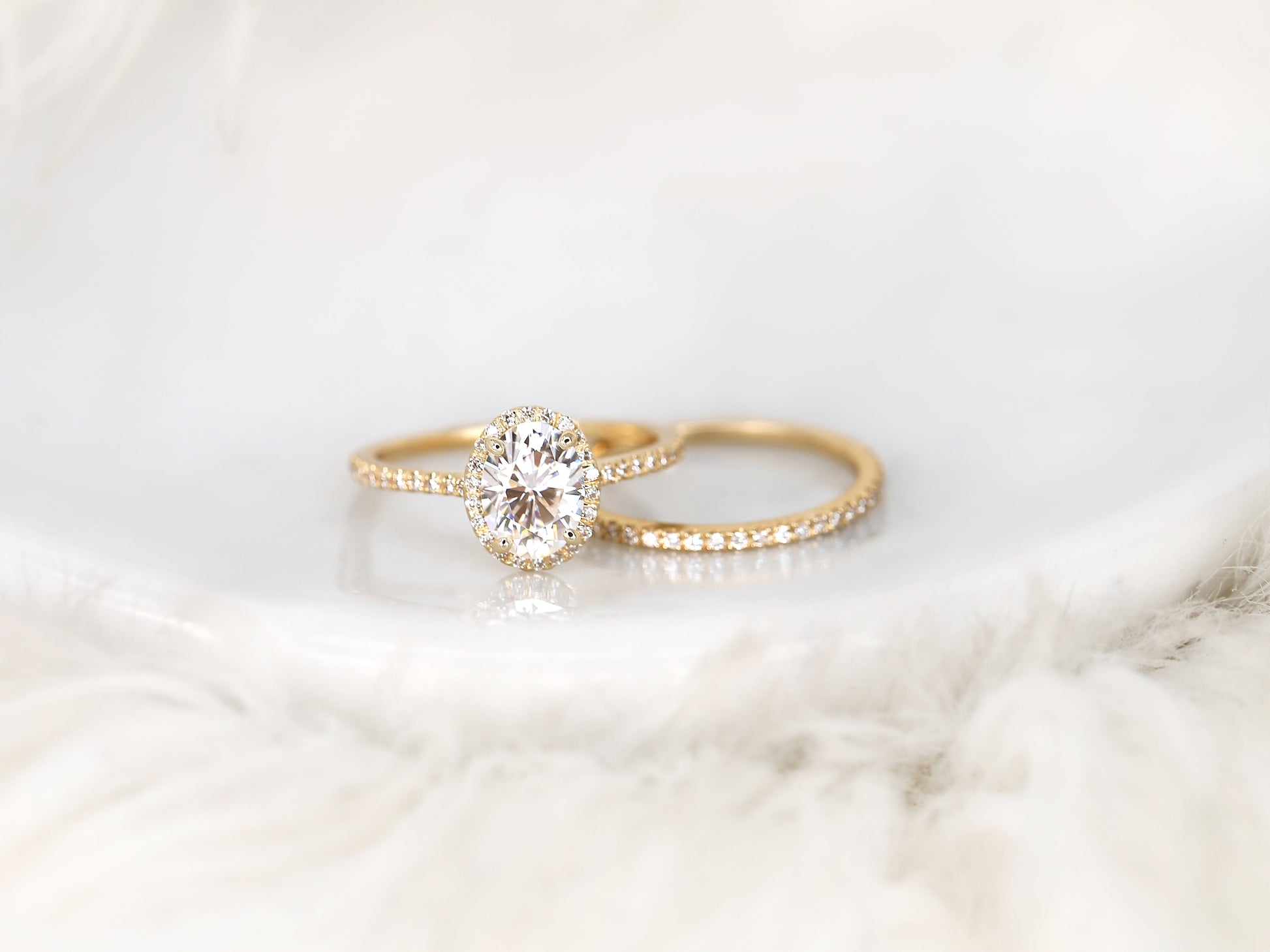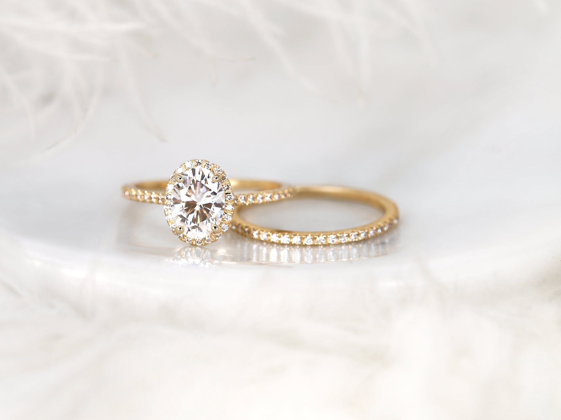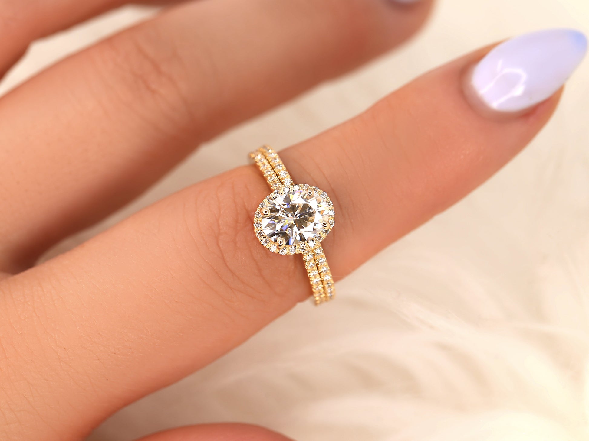 1.5 CT Oval Cut Halo & Pave Moissanite Bridal Ring Set