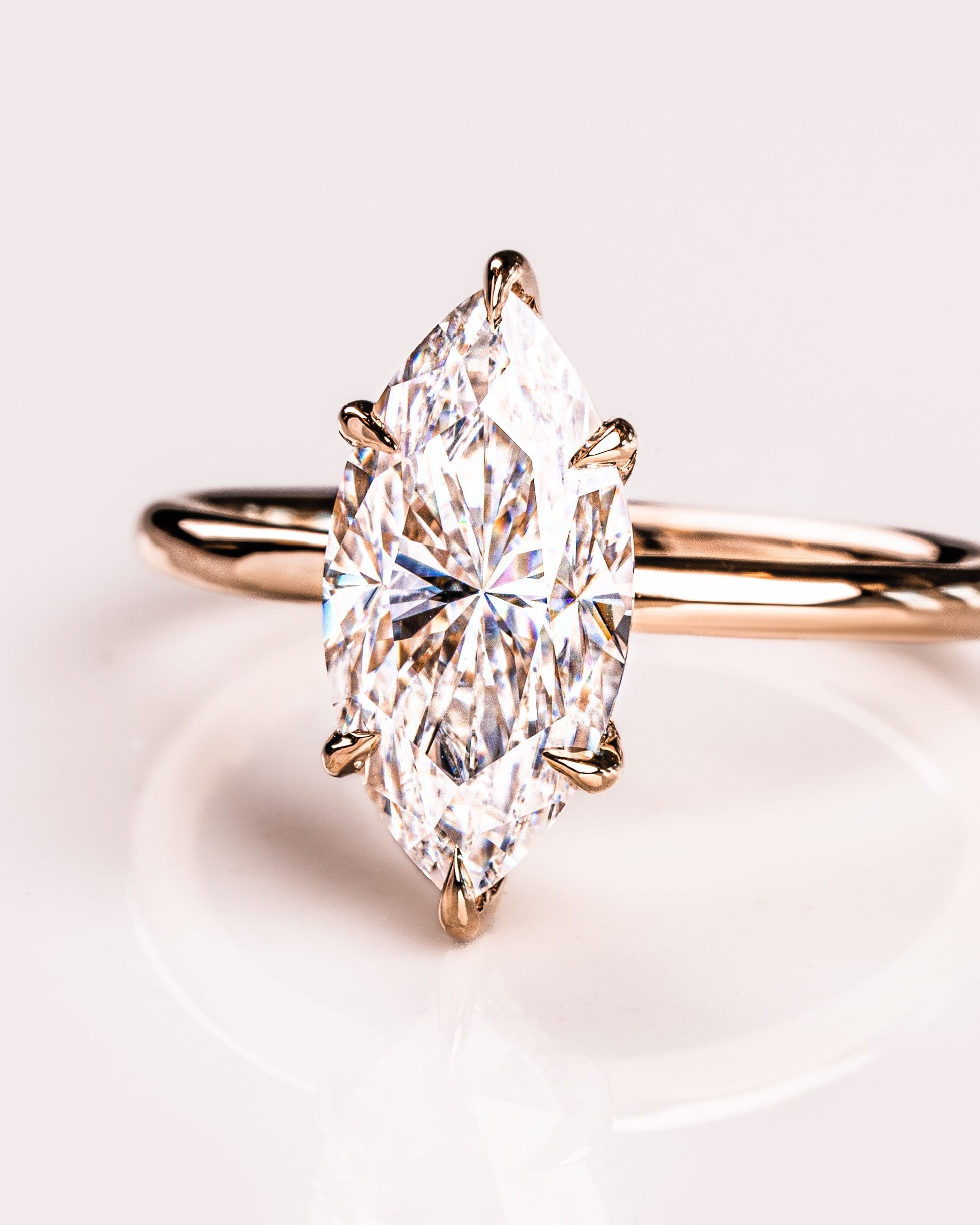 ✦ The Ring Shown in the Picture Holds a Beautiful 2.5 CT Marquise Cut Moissanite.