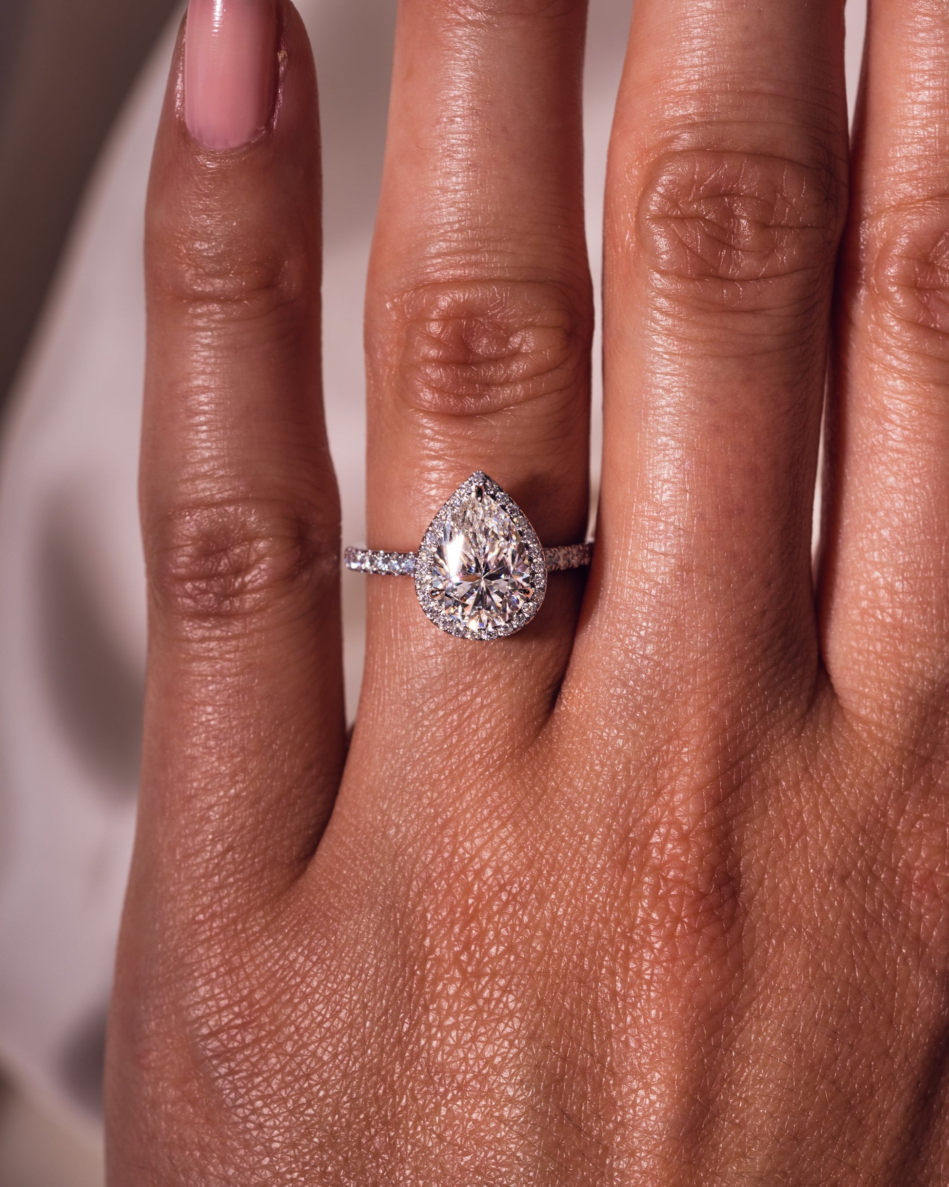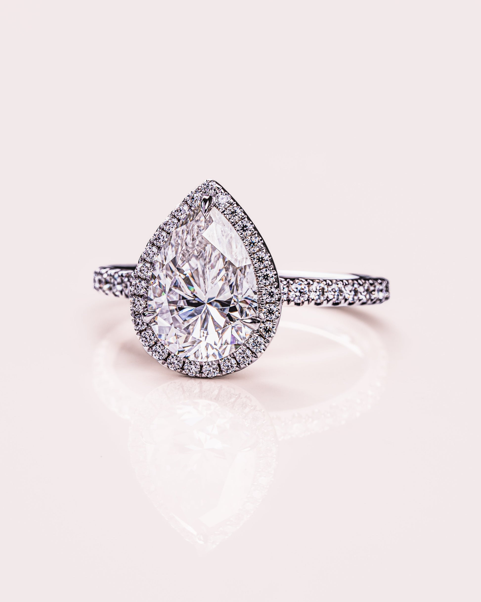 1.93 CT Pear Halo Pave Moissanite Engagement Ring