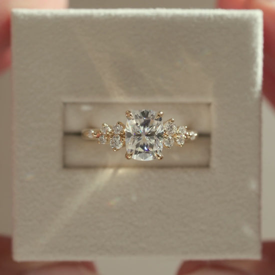 2.0 CT Elongated Cushion Cluster Moissanite Engagement Ring
