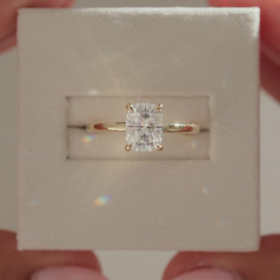 2.0 CT Elongated Cushion Hidden Halo Moissanite Engagement Ring