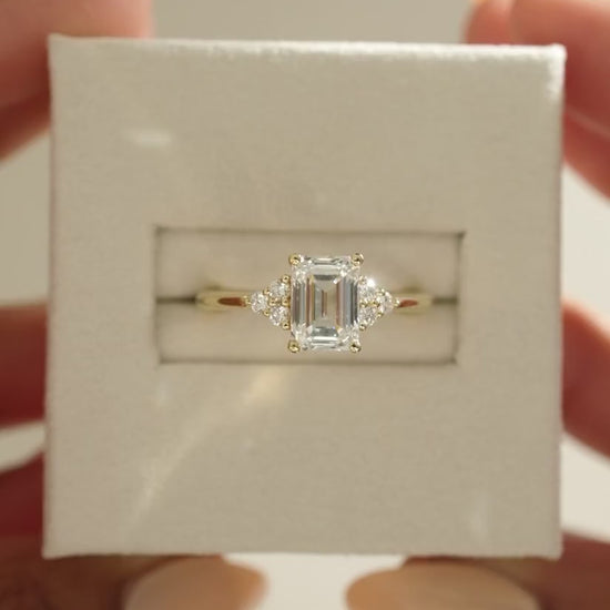 2.0 Ct Emerald Cut Cluster Moissanite Diamond Engagement Ring