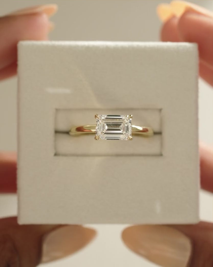 2.0 CT Emerald East West Solitaire Moissanite Engagement Ring