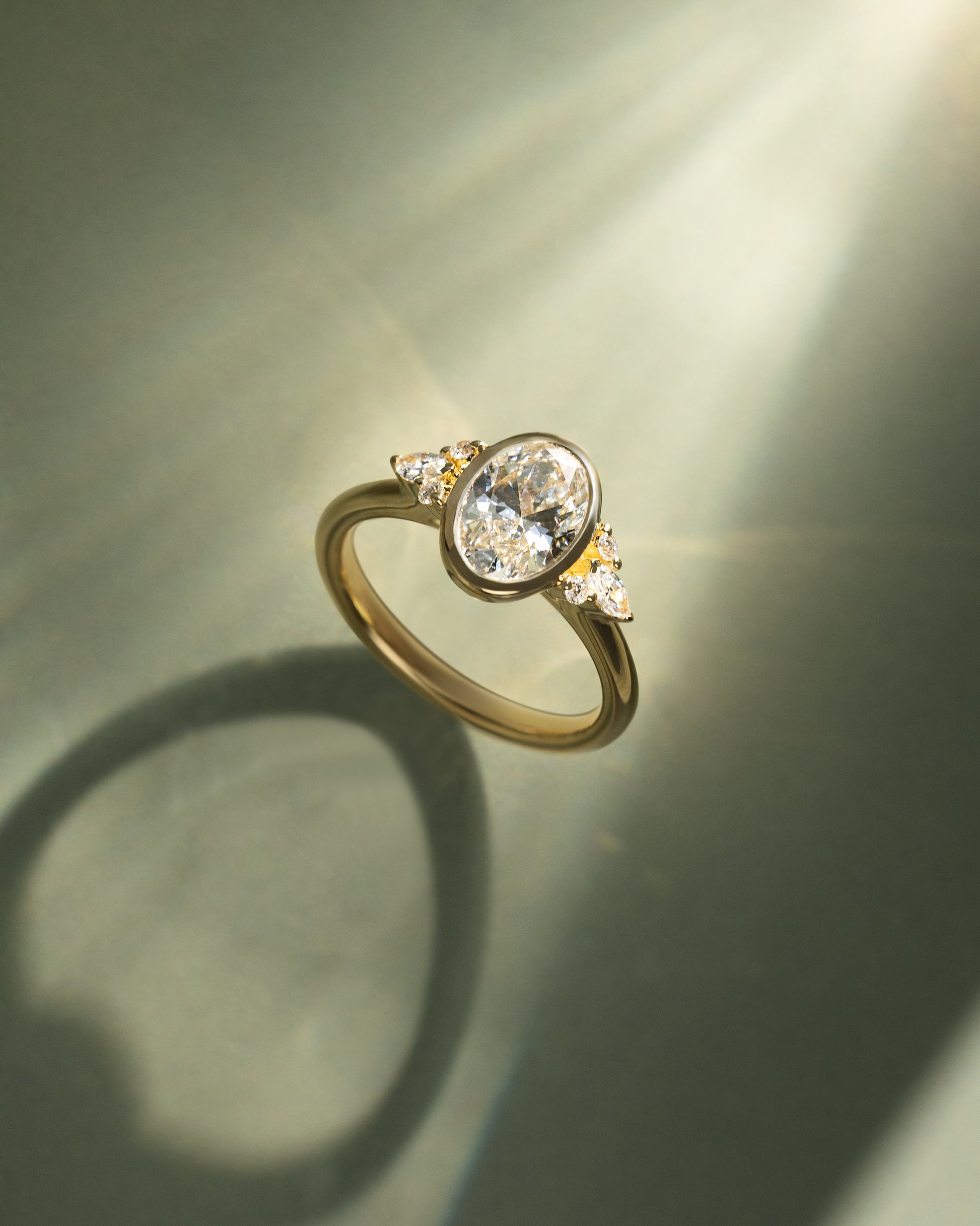 2.0 CT Oval Cluster & Bezel Styled Moissanite Engagement Ring