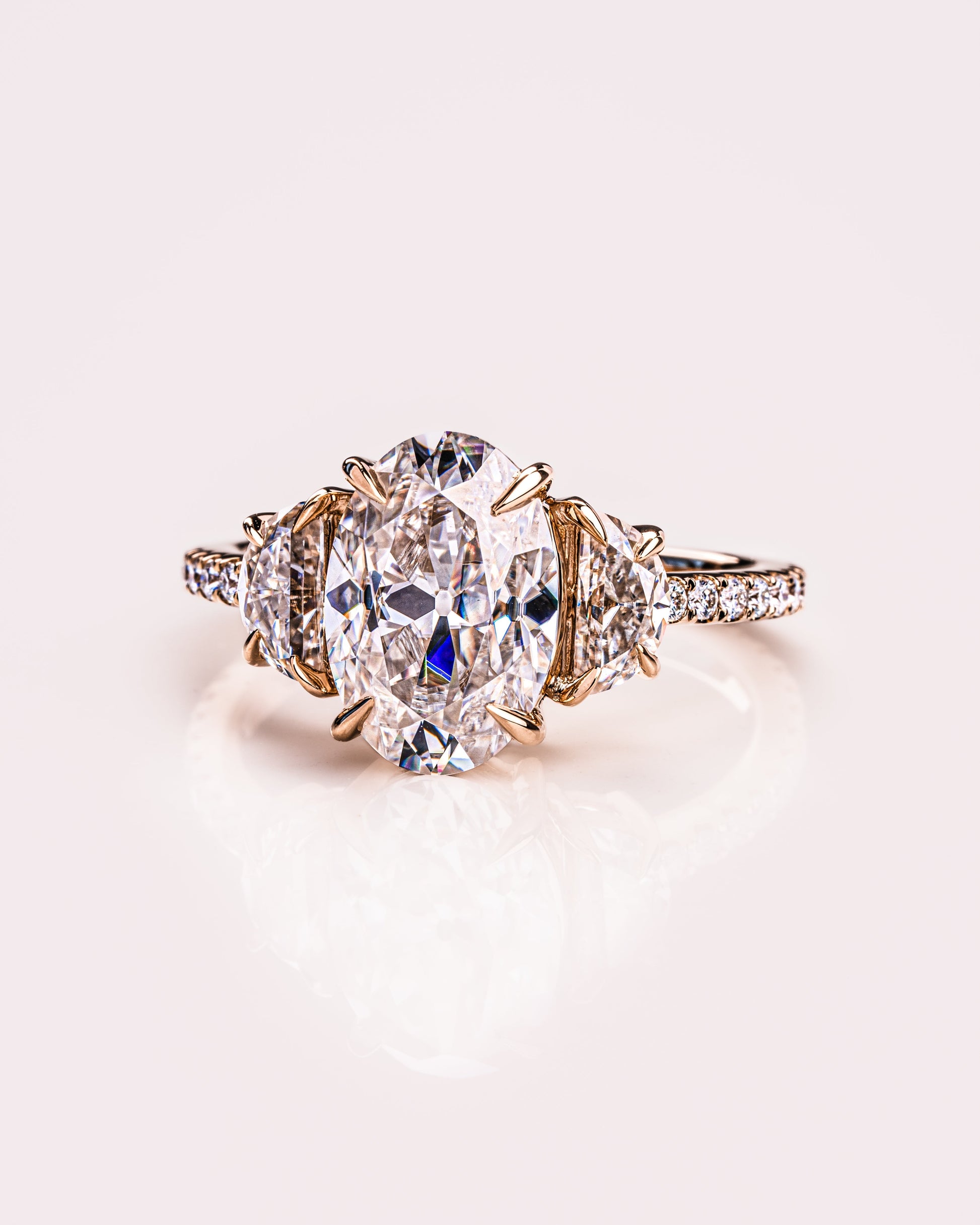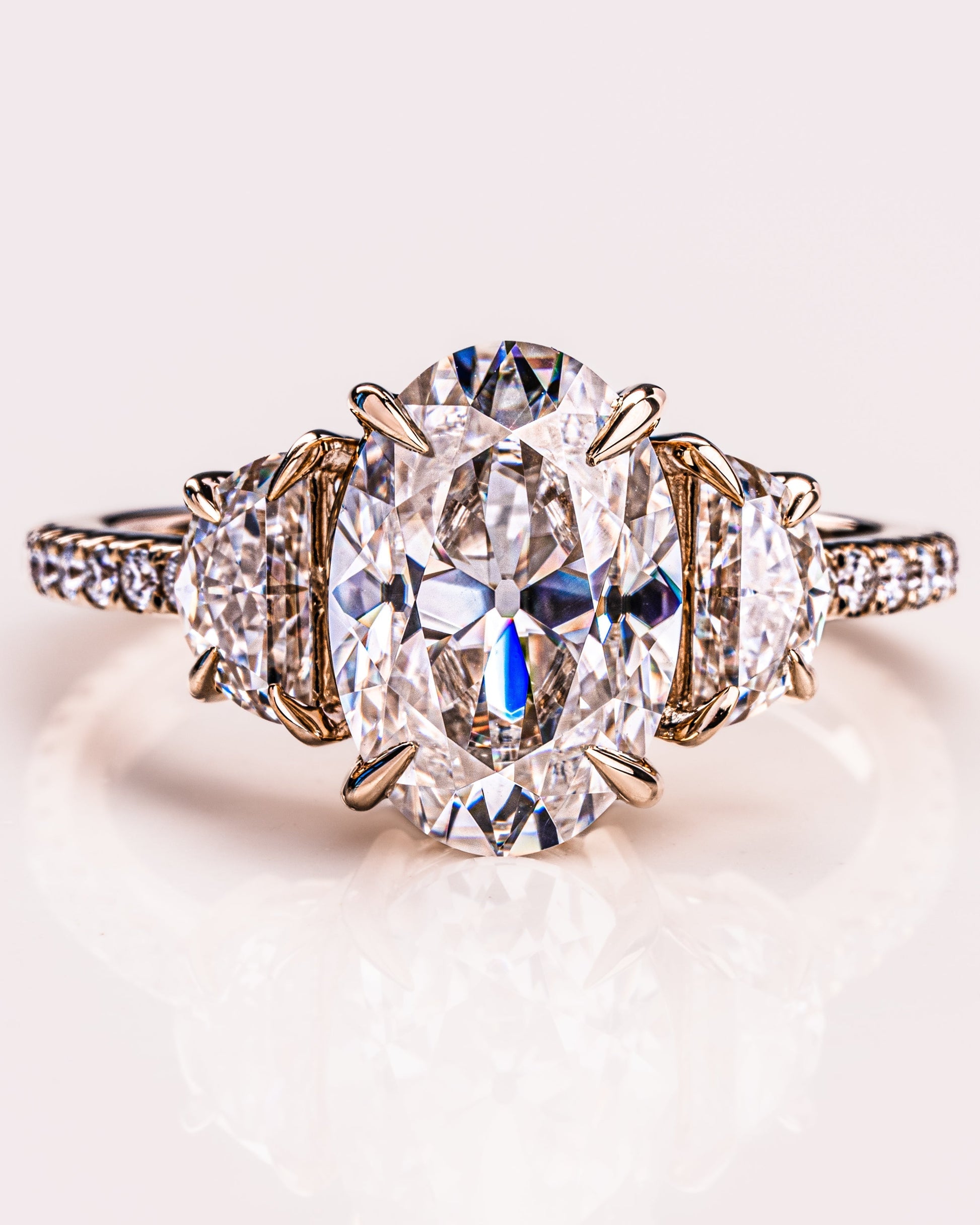 2.3 CT Oval Three Stone Pave Moissanite Engagement Ring