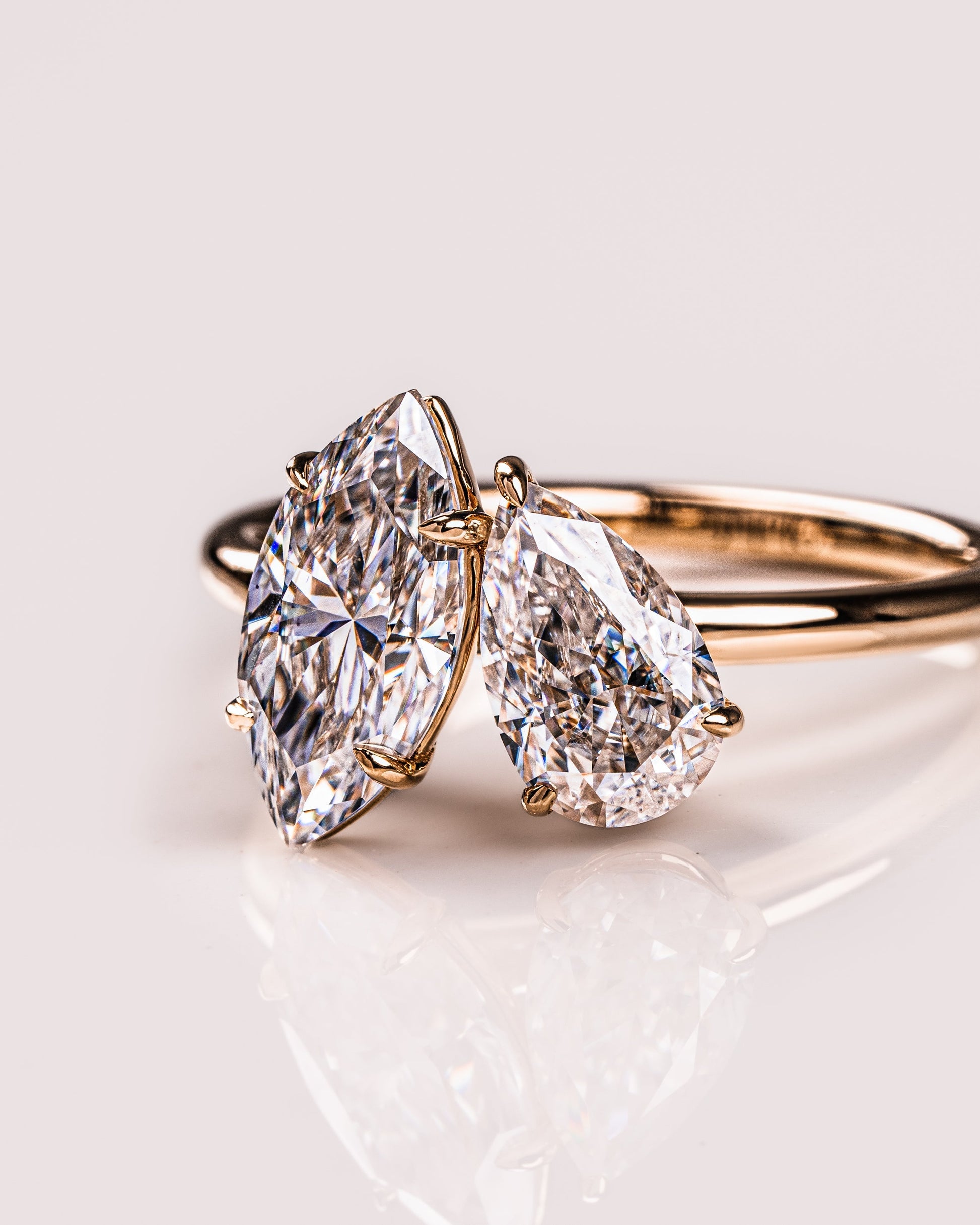 2.50 CT Marquise & Pear Cut Two Stone Moissanite Engagement Ring