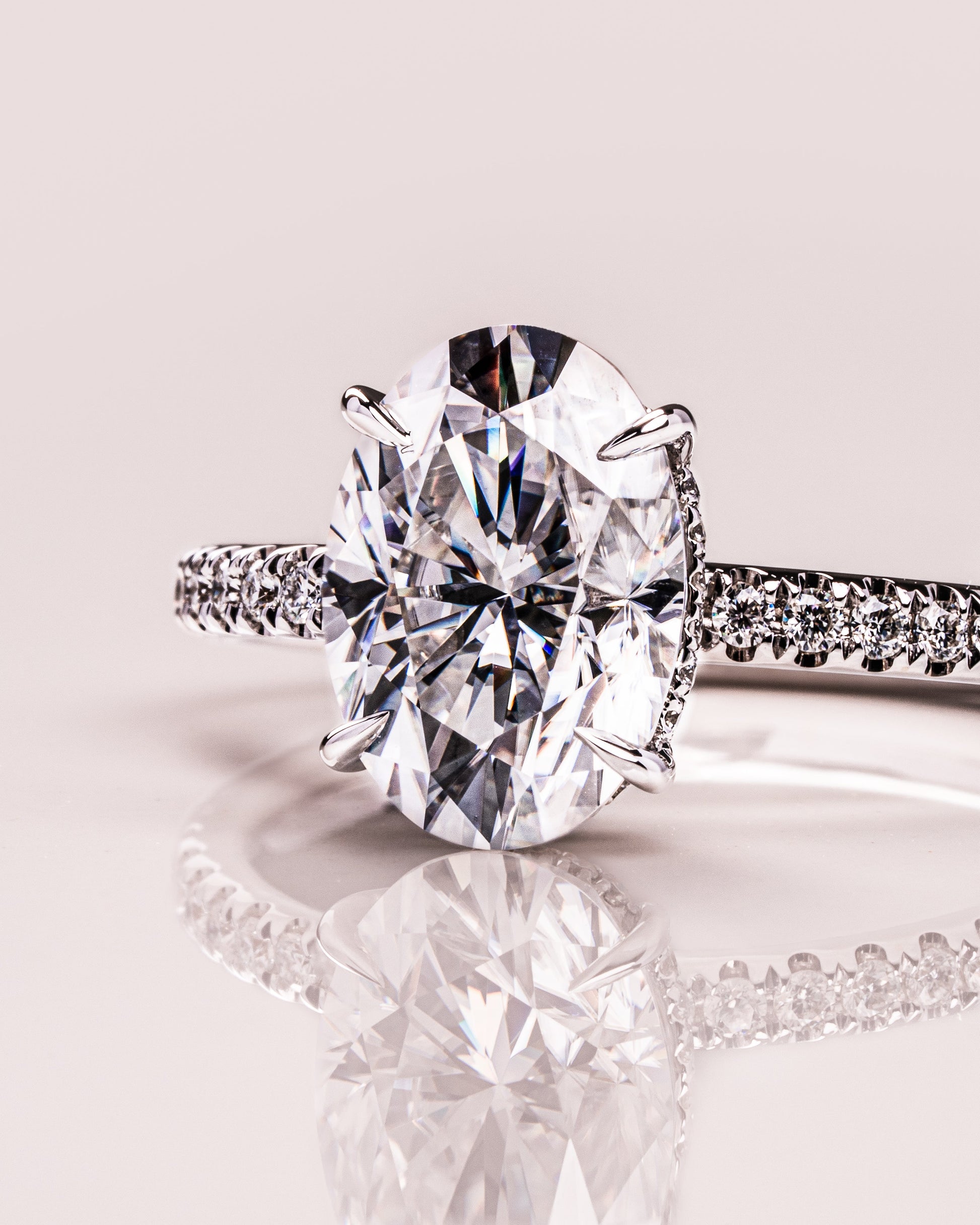 2.72 CT Oval Cut Solitaire Hidden Halo/Pave Setting Moissanite Engagement Ring