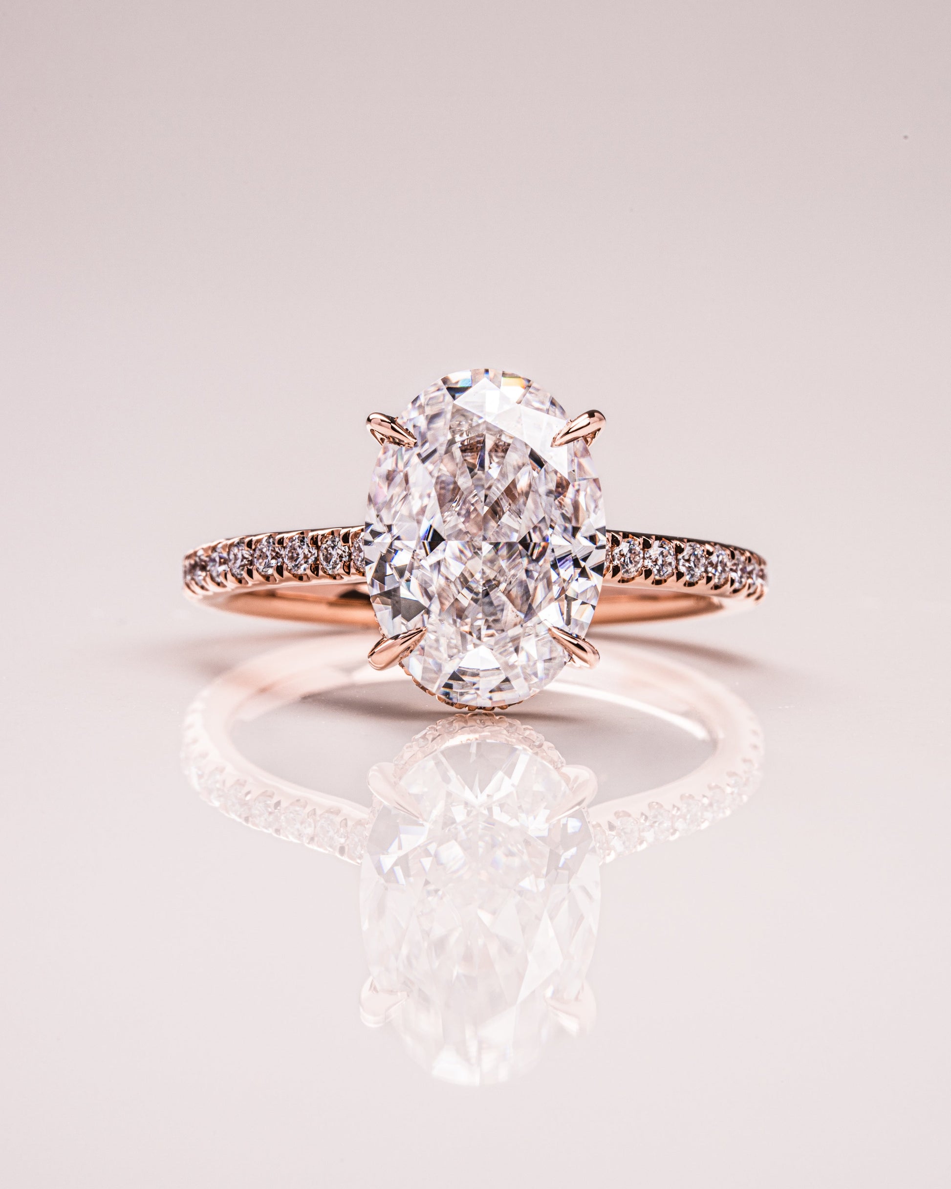 2.90 CT Oval Cut Solitaire Moissanite Engagement Ring With Hidden Halo/Pave Setting