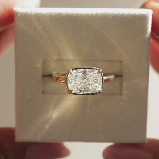 2 CT Elongated Cushion Bezel & Solitaire Moissanite Engagement Ring