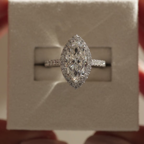 2 CT Marquise Cut Halo and Pave Moissanite Diamond Engagement Ring