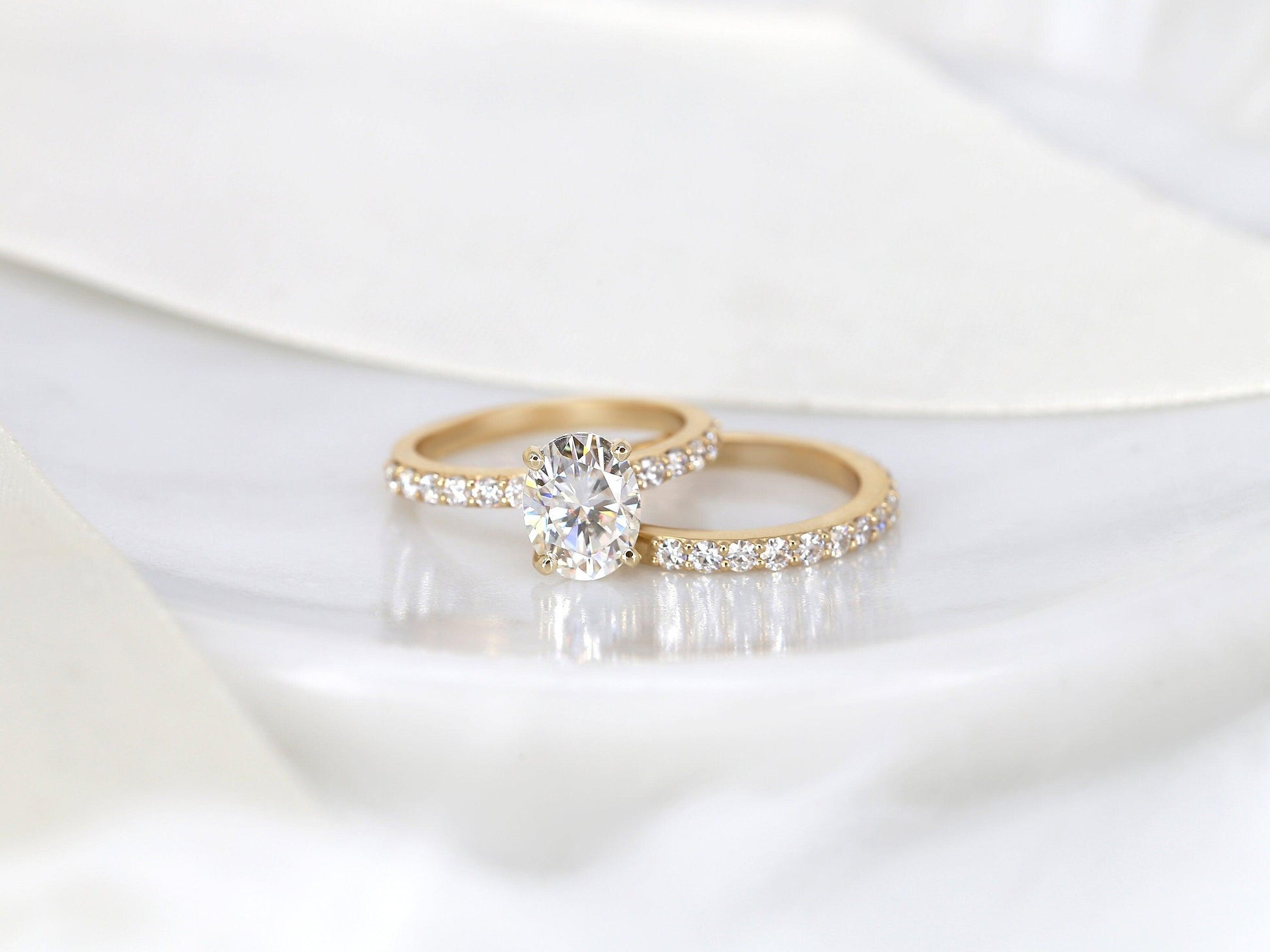 2 CT Oval Cut Bubble Halo & Pave Moissanite Bridal Ring Set