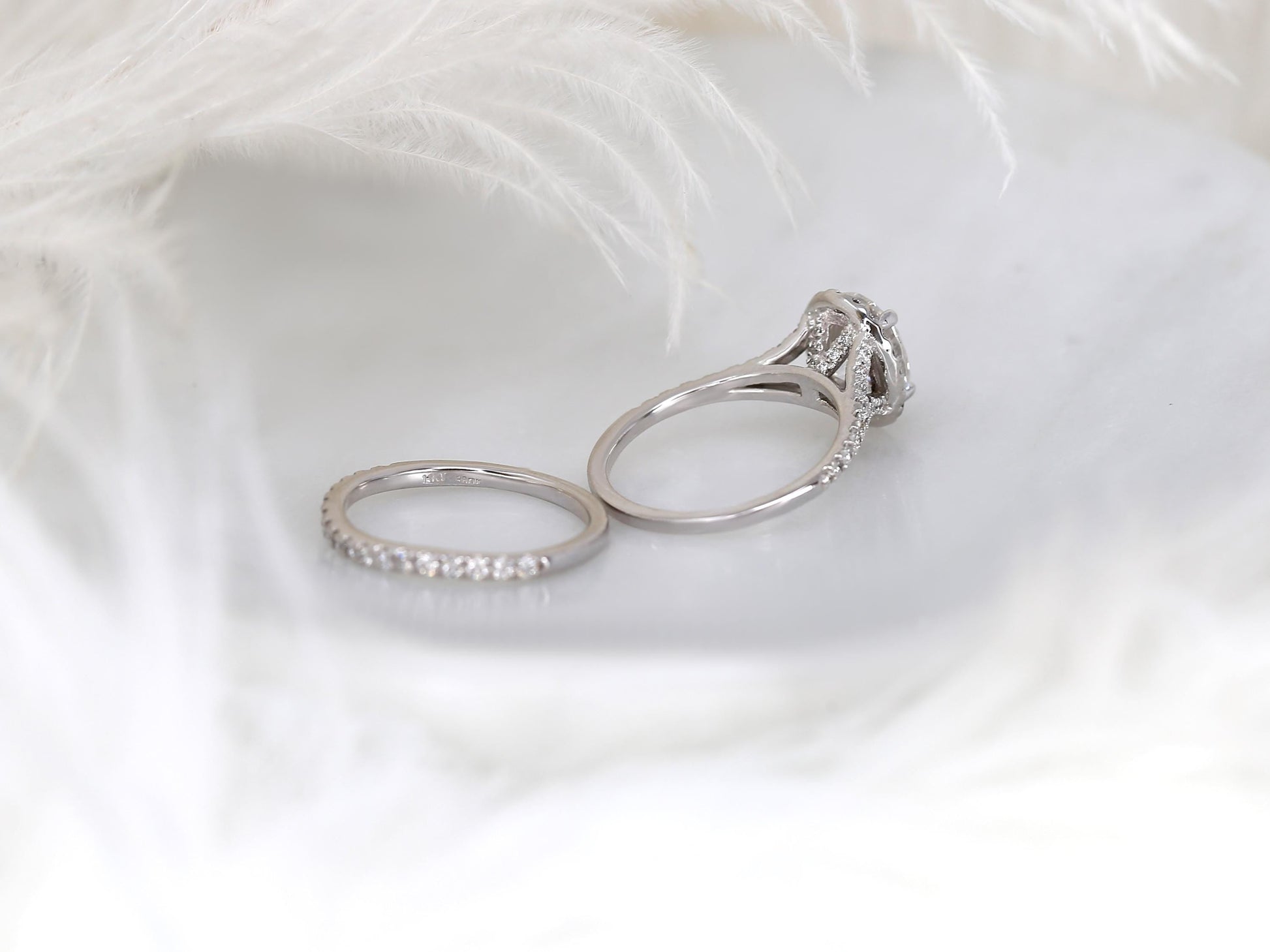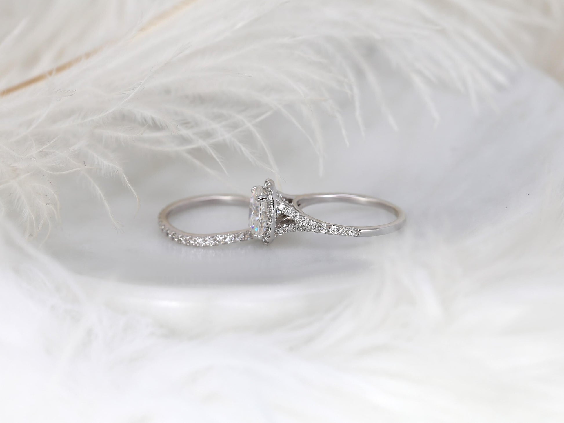 2 CT Oval Cut Halo & Pave Moissanite Bridal Ring Set