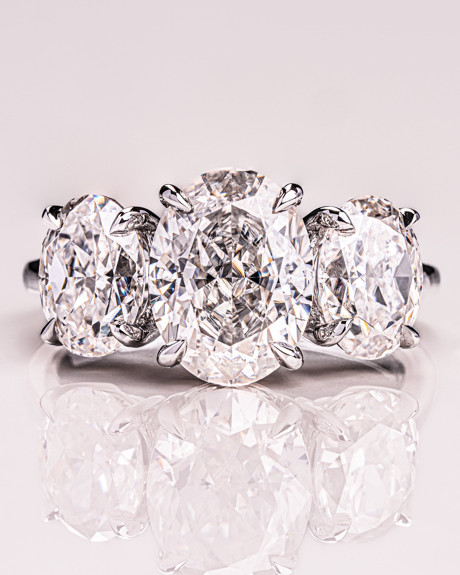 3.0 CT Oval Cut Three Stone Moissanite Engagement Ring