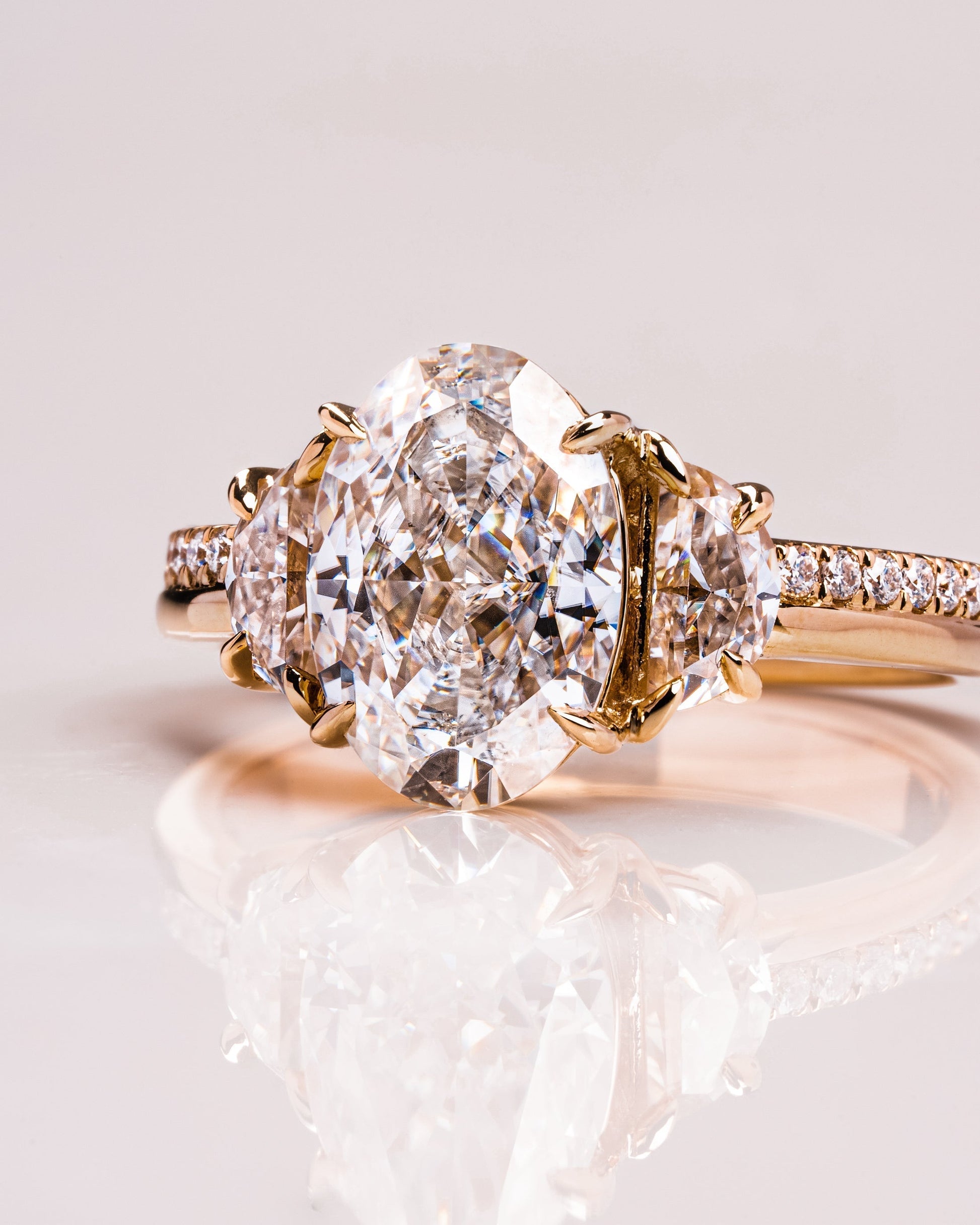 3.0 CT Oval Three Stone Pave Moissanite Engagement Ring