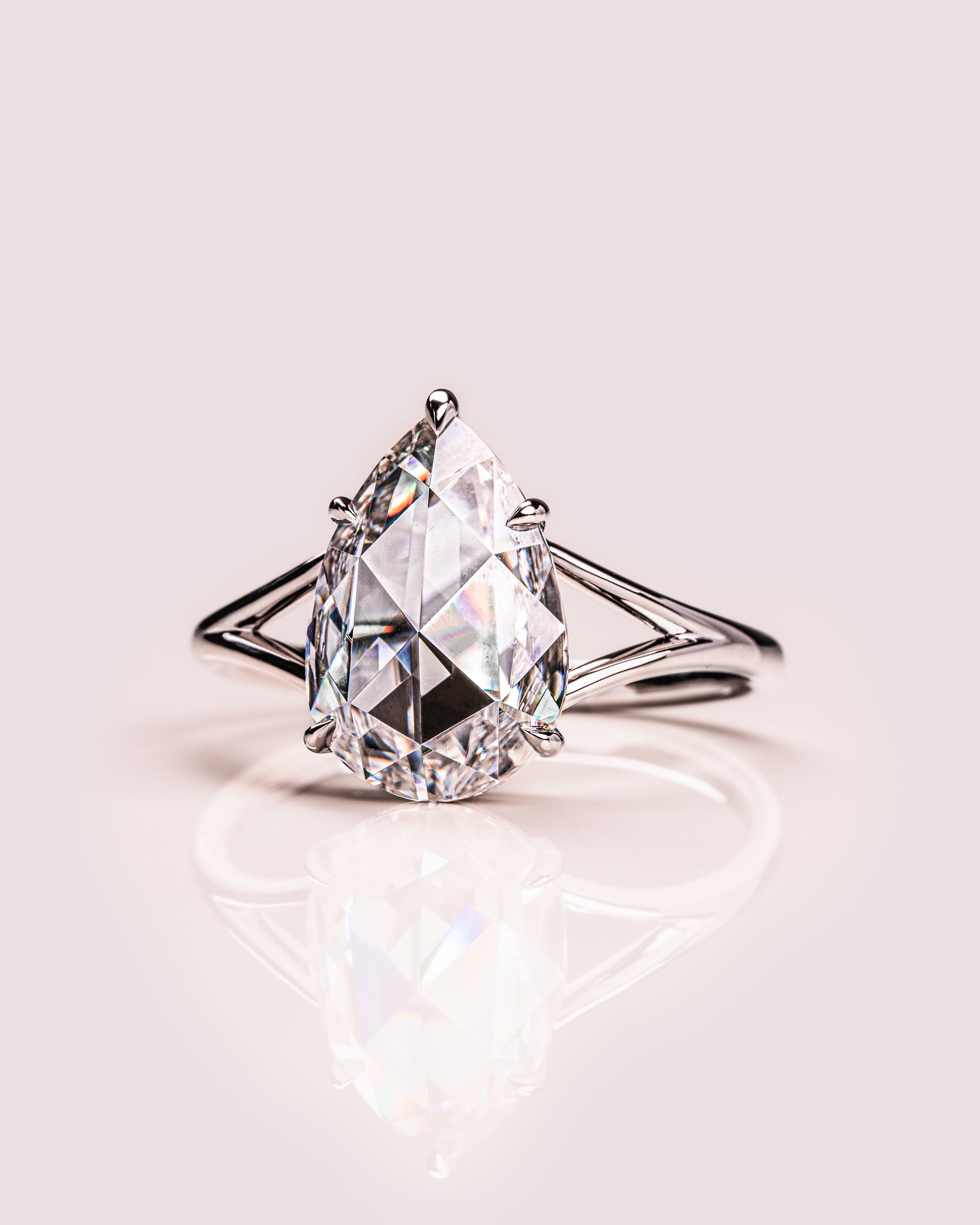 3.09 CT Pear Cut Moissanite Solitaire Engagement Ring With Split Shank Setting