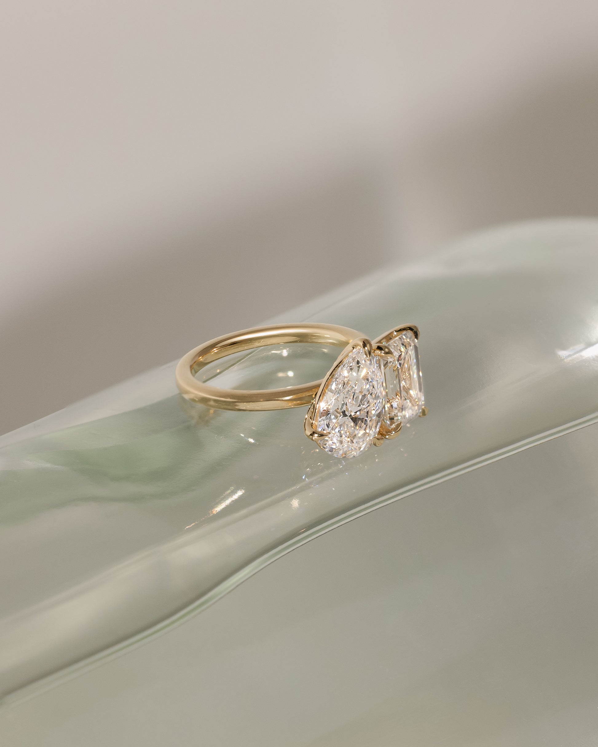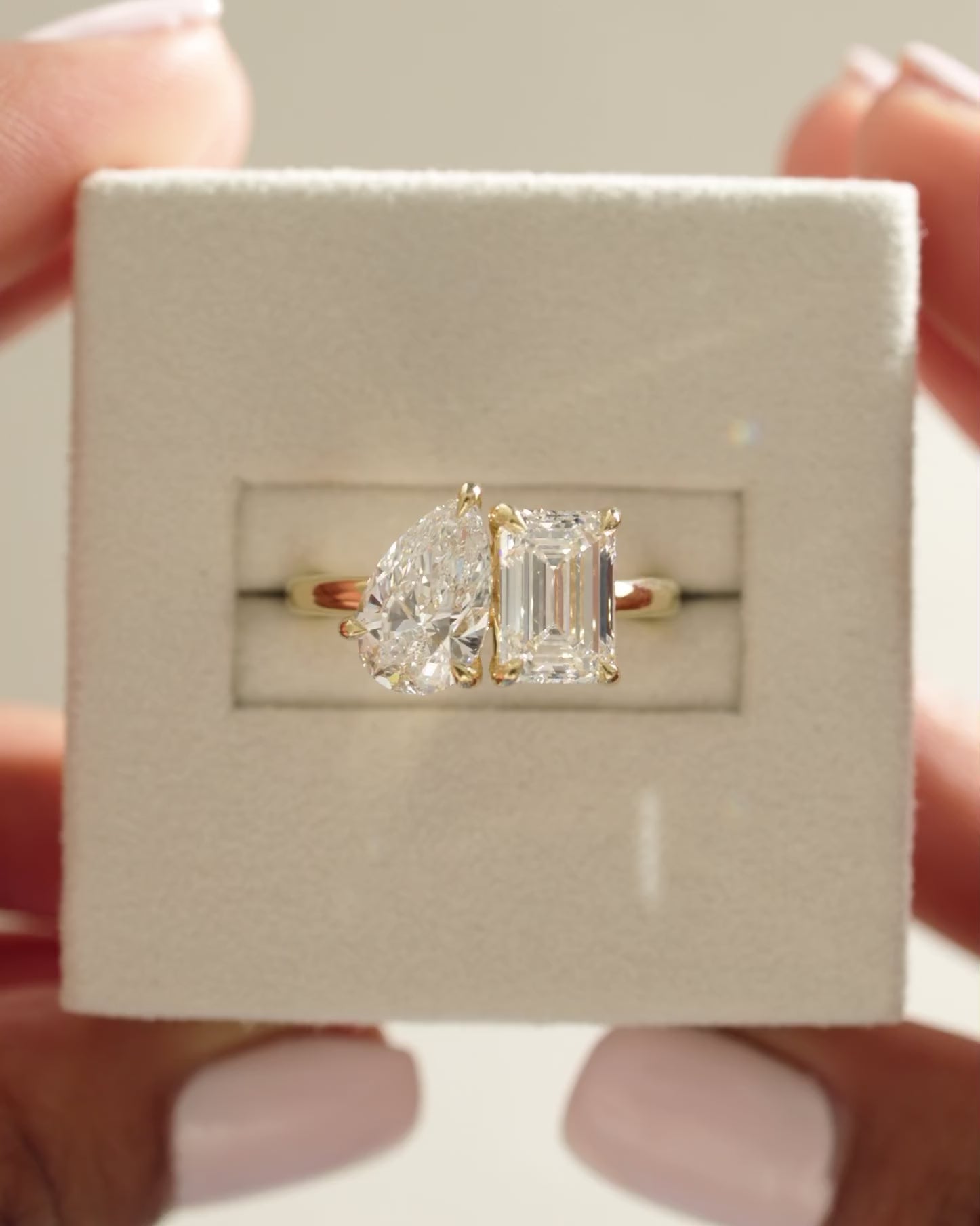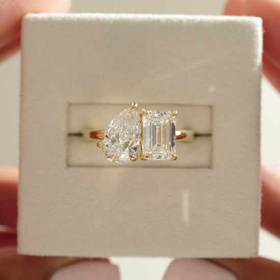 3.3 CT Emerald & Pear Cut Toi Et Moi Moissanite Engagement Ring