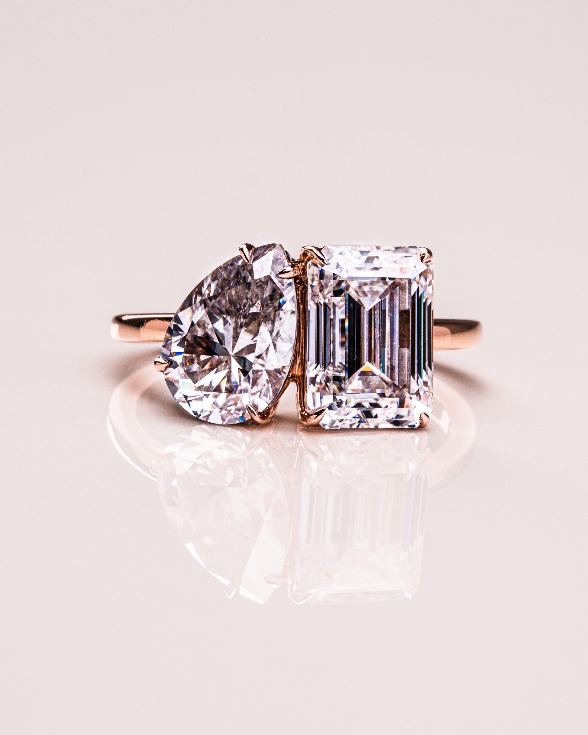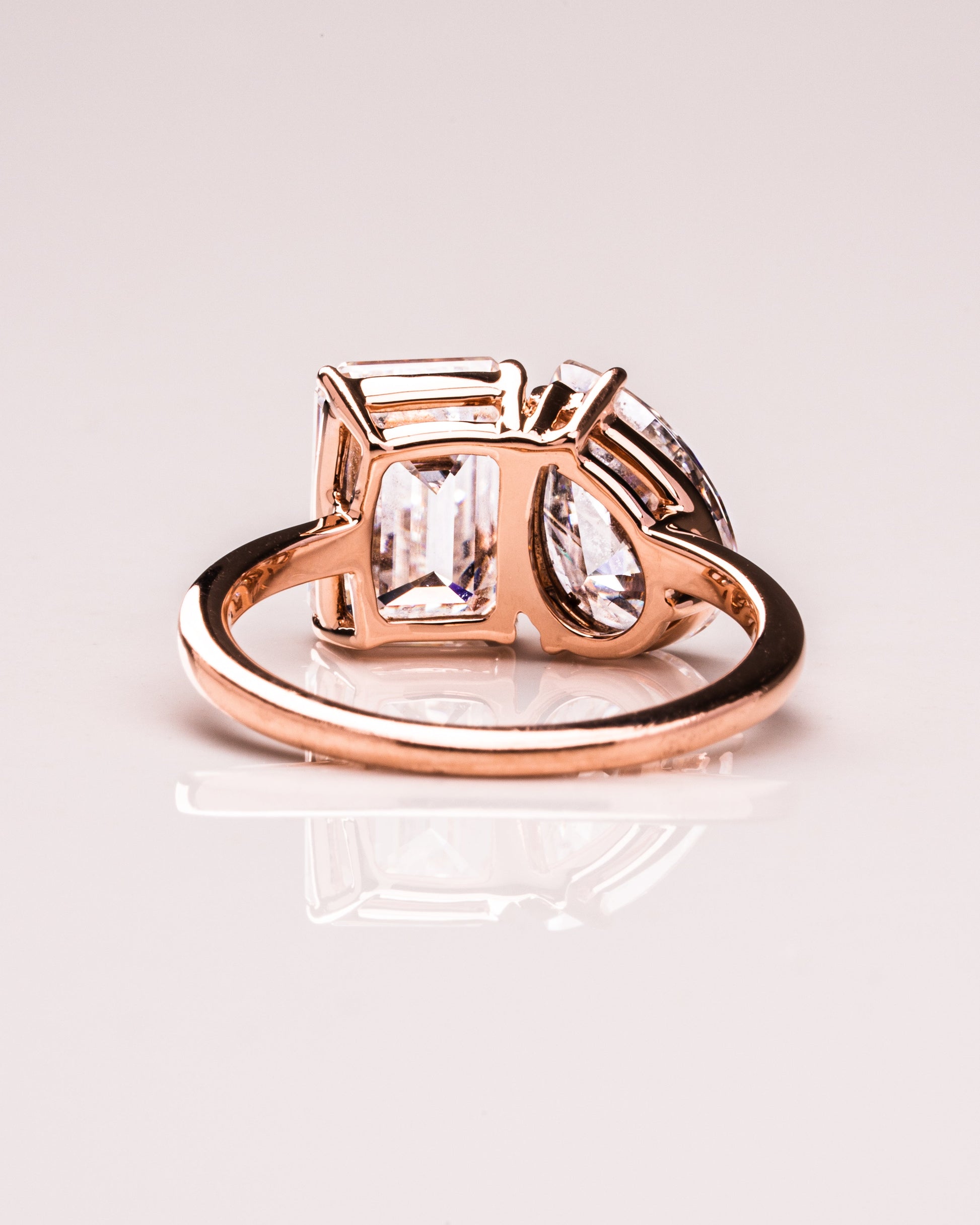 3.75 CT Emerald & Pear Cut Two Stones Toi Et Moi Moissanite Engagement Ring