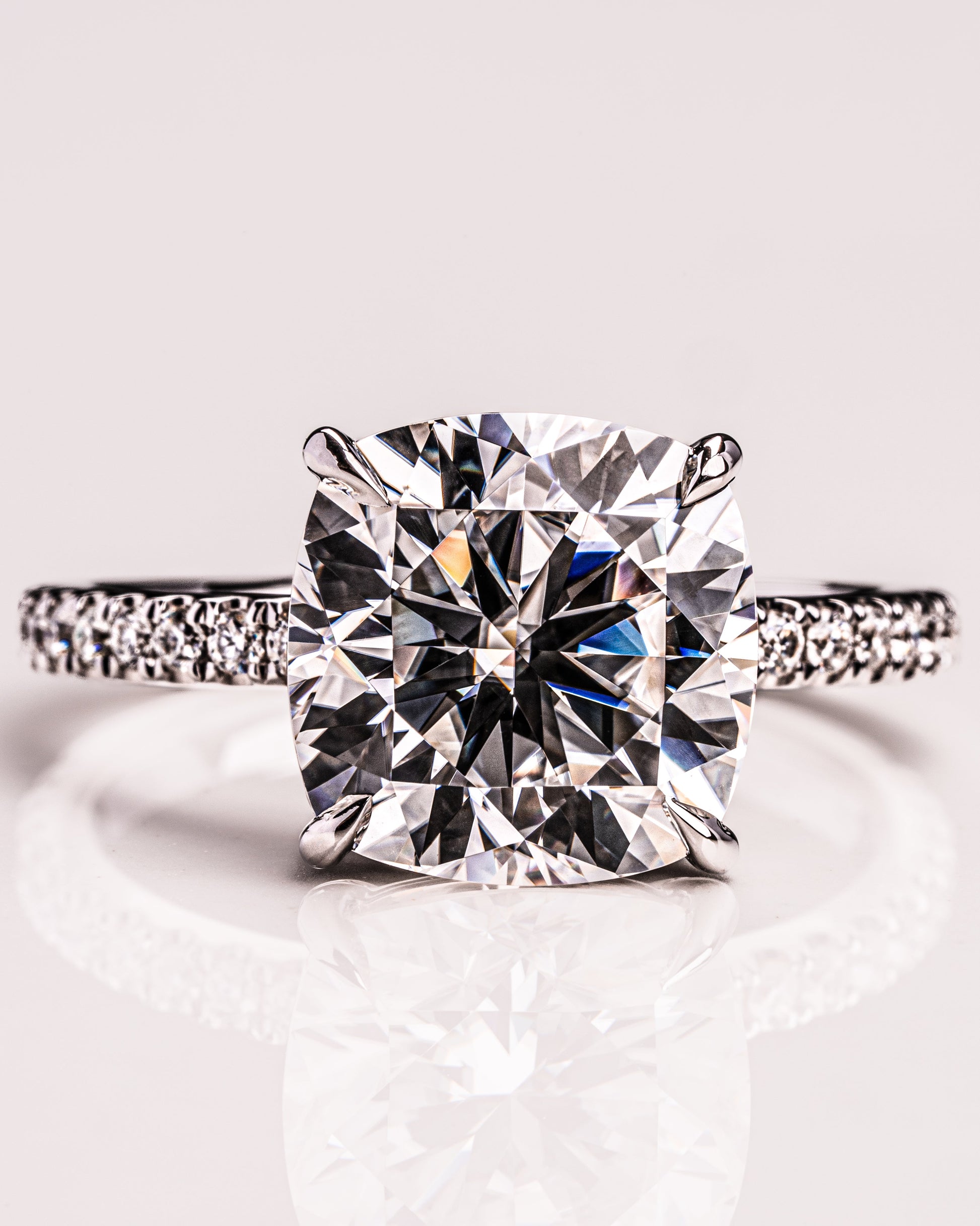 4.18 CT Cushion Cut Pave Setting Moissanite Engagement Ring