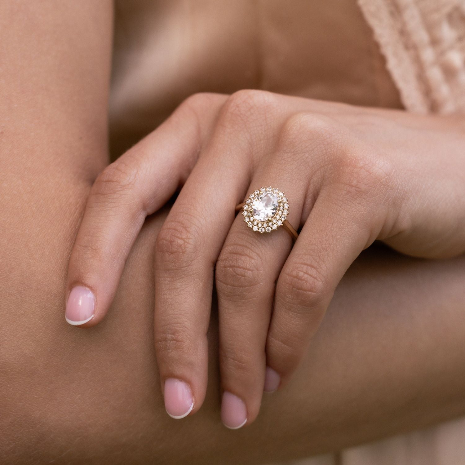 0.7 CT Oval Shaped Double Halo Moissanite Diamond Engagement Ring