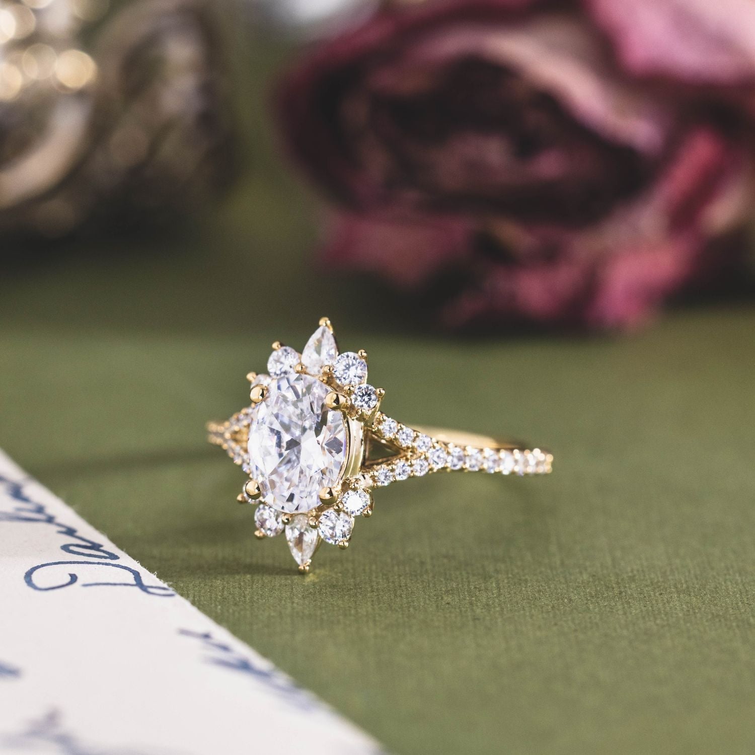1 CT Oval Shaped Halo & Pave Moissanite Diamond Engagement Ring