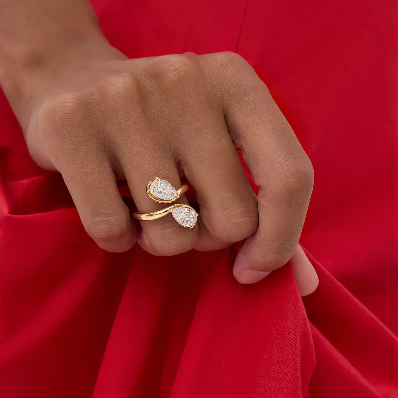 Timeless 2.4 CT Pear Cut Toi Et Moi Styled Moissanite Diamond Engagement Ring
